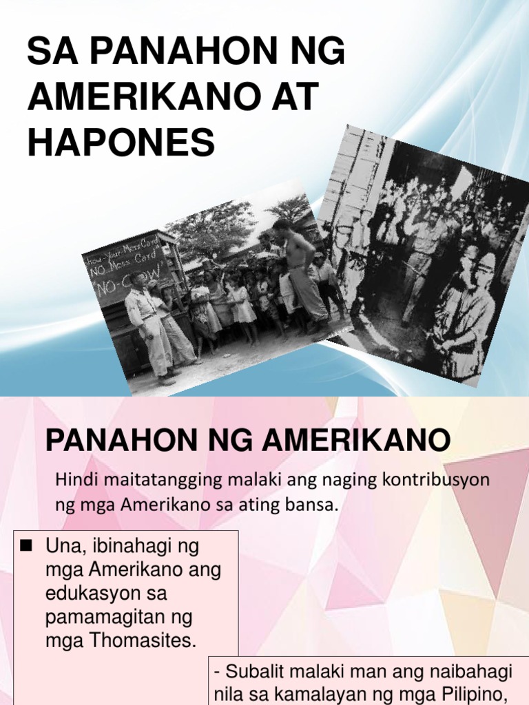 Tulad ng mga Espanyol marami ring mga pagbabagong ipinakilala ang mga Amerikano bilang mga bagong manankop ng ating bansa. Ginamit ng mga. Panahon ng Amerikano Hango sa Ang Wikang Pang-Edukasyon Noong Panahong Amerikano Hanggang sa Kasalukuyan Nelly I.