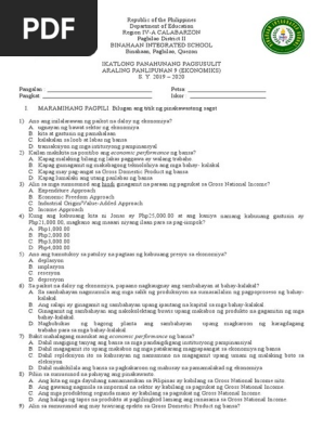 Ekonomiks grade 9 answer key. Kinakailangan ang mas malalim na pagtalakay sa konsepto ng paikot na daloy ng ekonomiya upang maihanda ang iyong sarili sa pagsasabuhay ng iyong mga natutuhan. Bukas ang ekonomiya kapag ang pambansang ekonomiya ay nakikilahok sa kalakalang panlabas.